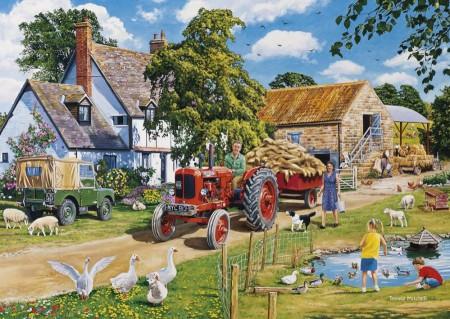 Met vier puzzels van 500 stukjes in één doos ga je op reis met The Farmer’s Round. Er is nooit een saai moment voor onze boer wanneer hij de koeien melkt, de tractor bestuurt, zijn dieren en prijswinnende gewassen naar de boerenmarkt brengt. Wat is er mooier dan een scone met jam en een goede kop thee na een drukke dag op de boerderij? Fans van Trevor Mitchell zullen niet teleurgesteld worden.