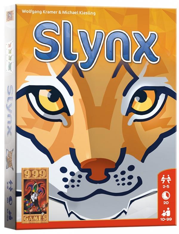 In dit snelle kaartspel moet je punten verzamelen door groepjes kaarten neer te leggen. Zo maak je een stapel van kaartengroepen, zoals bijvoorbeeld een groep van vier kaarten met het getal 2 bovenop een groep van 3 kaarten met het getal 9. Elke kaart die je zo neer weet te leggen is een punt waard. Maar dat is niet alles! Zodra je kaarten hebt neergelegd, mag je namelijk kaarten van je tegenspeler stelen. Iedere speler die als bovenste groep een aantal kaarten heeft liggen dat gelijk is aan jouw groep en waarvan de waarde per kaart lager is dan die van jou, is de klos. Pak deze kaarten af en neem ze op hand, of dwing je tegenspeler deze kaarten zelf te verwijderen. Zo saboteer je elkaars puntenverzameling. Het spel heet niet voor niets Slynx! Slynx is een heel eenvoudig spel, dat echter boordevol tactiek zit. Om meer punten te scoren moet je kaarten van je tegenspelers op hand nemen. Maar hoe meer kaarten jij op deze manier verzamelt, hoe meer risico je loopt. Zodra iemand na het neerleggen van zijn laatste kaart een volledig lege hand heeft, is het spel namelijk afgelopen. Al die kaarten in jouw hand veranderen dan automatisch in strafpunten!