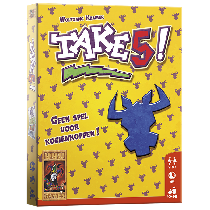 Take 5! is een ideaal spel voor grotere groepen mensen die een eenvoudig, snel spelletje willen spelen. Daarom is dit spel erg populair onder studenten en grotere families. Omdat deze editie vele extra’s bevat, kunnen ook doorgewinterde Take5!-spelers hier veel nieuw speelplezier aan beleven!