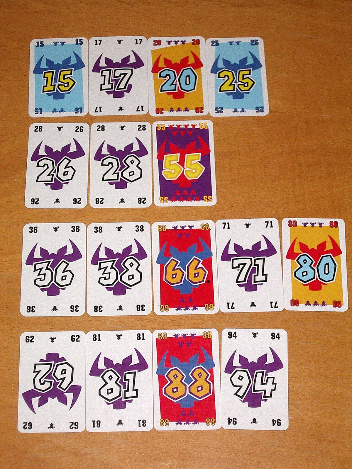 Wie incasseert de minste strafpunten? Het spel bevat 104 kaarten met verschillende waarden en strafpunten. Iedere speler krijgt er 10 en er liggen 4 kaarten open op tafel. Elke ronde legt iedereen een kaart gedekt voor zich neer en draaien deze tegelijkertijd om. Daarna leggen ze hun kaart aan de op tafel liggende kaarten aan, waarbij de speler met de laagste kaart begint, enzovoort. Wie de zesde kaart aan een rij moet leggen, moet de vijf kaarten van die rij als strafpunten nemen alvorens hij zijn kaart neerlegt. Wie na 10 ronden de minste strafpunten heeft, wint. Take 5! is een ideaal spel voor grotere groepen mensen die een eenvoudig, snel spelletje willen spelen. Daarom is dit spel erg populair onder studenten en grotere families.
