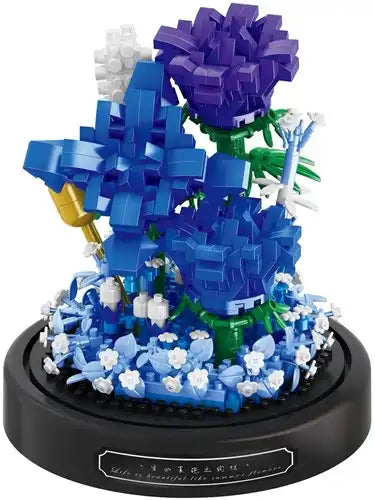 De Balody Blauwe Rozen bouwset, is een betoverende kunststof bouwset voor volwassenen en iedereen van 12 jaar, waarmee je een schitterend boeket blauwe rozen kunt creëren. De intense tinten blauw van de rozen vormen een prachtige blikvanger, terwijl de witte bloemetjes met groene blaadjes en het chique “glas” van de stolp het geheel afmaken. Deze set straalt luxe en elegantie uit.