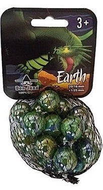 De set "Knikkers Elementen Draken" bevat 20 knikkers van 16mm en één knikker van 25mm in verschillende kleuren en designs met drakenthema, uitgegeven door Don Juan. Keuze uit een van 4 varianten.