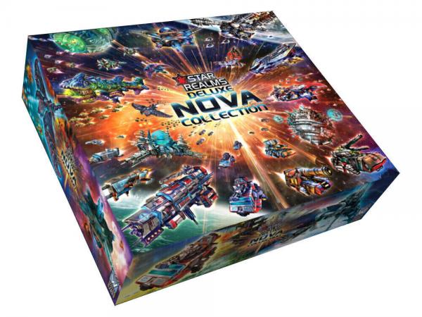 This Deluxe Nova Collection features beautiful foil versions of the cards from the original Star Realms Deckbuilding Game, Crisis: Bases and Battleships, Crisis: Events, Crisis: Fleets and Fortresses, Crisis: Heroes, Gambit Set, Cosmic Gambit Set, Promo Pack 1, and the Promo Cards from the Universal Storage Box, plus starting decks and Explorers for up to 6 players.