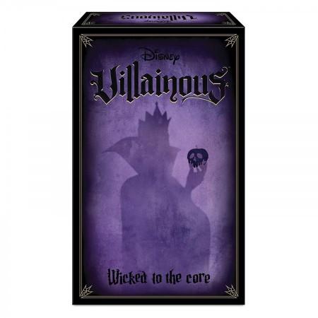 In Villainous: Wicked to the Core, each player takes control of one of three Disney characters, each one a villain in a different Disney movie, specifically the Evil Queen from Snow White, Hades from Hercules, and Dr. Facilier from The Princess and the Frog. Each player has their own villain deck, fate deck, player board, and 3D character. On a turn, the active player moves their character to a different location on their player board, takes one or more of the actions visible on that space (often by playing cards from their hand), then refills their hand to four cards. Cards are allies, items, effects, and conditions. You need to use your cards to fulfill your unique win condition. One of the actions allows you to choose another player, draw two cards from that player's fate deck, then play one of them on that player's board, covering two of the four action spaces on one of that player's locations. The fate deck contains heroes, items, and effects from that villain's movie, and these cards allow other players to mess with that particular villain. Villainous: Wicked to the Core is playable on its own, and its characters can also face off against those in the Villainous base game from 2018.