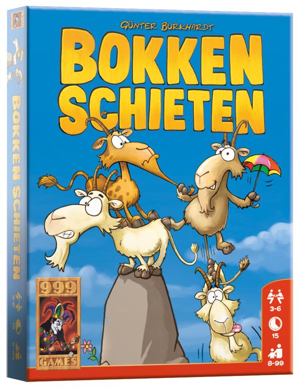 In dit kaartspel proberen de spelers zoveel mogelijk geiten te verzamelen zonder de limiet te overschrijden. Iedere speler krijgt aan het begin 8 kaarten. Hij speelt steeds 1 kaart, een slag, open op tafel. De speler die de kaart met de laagste waarde heeft gespeeld, trekt een heuvelkaart en legt die op tafel, waarbij hij 1 van de 2 waarden erop kiest. De speler die de kaart met de hoogste waarde heeft gespeeld, wint de slag en start de volgende. Dit gaat zo door totdat alle kaarten zijn gespeeld. De heuvel is na 4 slagen afgebouwd en bepaalt de geitenlimiet. Wie na 8 slagen de meeste geiten heeft verzameld en niet de geitenlimiet heeft overschreden wint het spel. Je kunt er ook voor kiezen om meerdere ronden te spelen en de scores te noteren. Bokken Schieten is een kaartspel dat 999 Games 15 jaar geleden al succesvol heeft uitgebracht, maar nu in een nieuw jasje in eigen beheer uitgeeft.