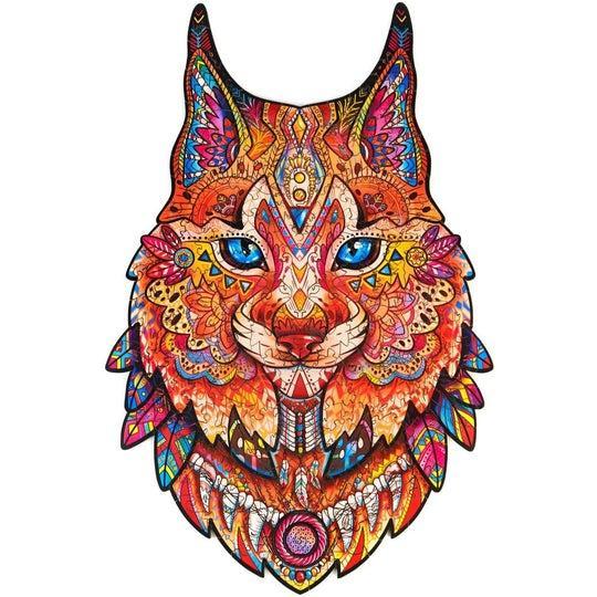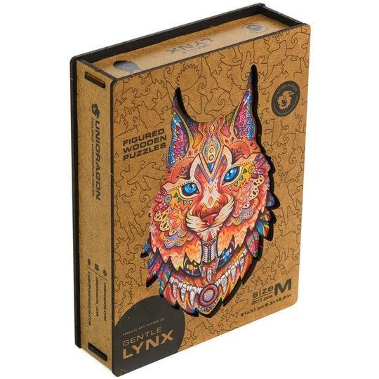 Stap de wildernis in met de Zachtmoedige Lynx. Ruik de rook van een kampvuur, hoor het gekwetter van bosvogels en ga even met ons zitten in een tent. Onze lynx wordt zachtmoedig genoemd, maar ze is een echte roofdier. Het bos is haar jachtgebied en de bewoners zijn haar prooi. Bij het samenstellen van deze puzzel zul je zelf ook de kwaliteiten van een echte lynx hebben: oplettendheid, geduld en het vermogen om de schoonheid van de natuur op te merken. In je handen zul je een konijn, een gopher, een vis, een raaf en vele andere bosbewoners hebben. De puzzel is gemaakt van duurzaam hout en de unieke illustratie is afgedrukt met een UV-print tint die niet vervaagt. Klaar om een wandeling in het bos te maken? Loop voorzichtig en veel plezier met jagen!Elke puzzel in de Animals serie is verkrijgbaar in vier maten. Hoe groter de maat, hoe moeilijker het is om de puzzel in elkaar te zetten en hoe interessanter het verhaal erachter wordt. De kleinste puzzels zijn als trailers voor geweldige films, terwijl de Royal Size puzzels je meenemen op een reis met hun eigen verhalen en plotwendingen. De sneden van elke maat van elke puzzel zijn uniek en verschillend. Ze zijn gemaakt door creatieve ontwerpers om je dieper in het verhaal te brengen en je zoveel mogelijk geweldige ontdekkingen te laten doen., 105 stukjes.