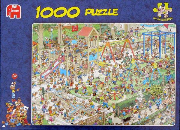De doldwaze afbeelding van een speeltuin, boordevol spelende kinderen is een lust voor het oog en de 1000 stukjes maken de uitdaging nog groter!