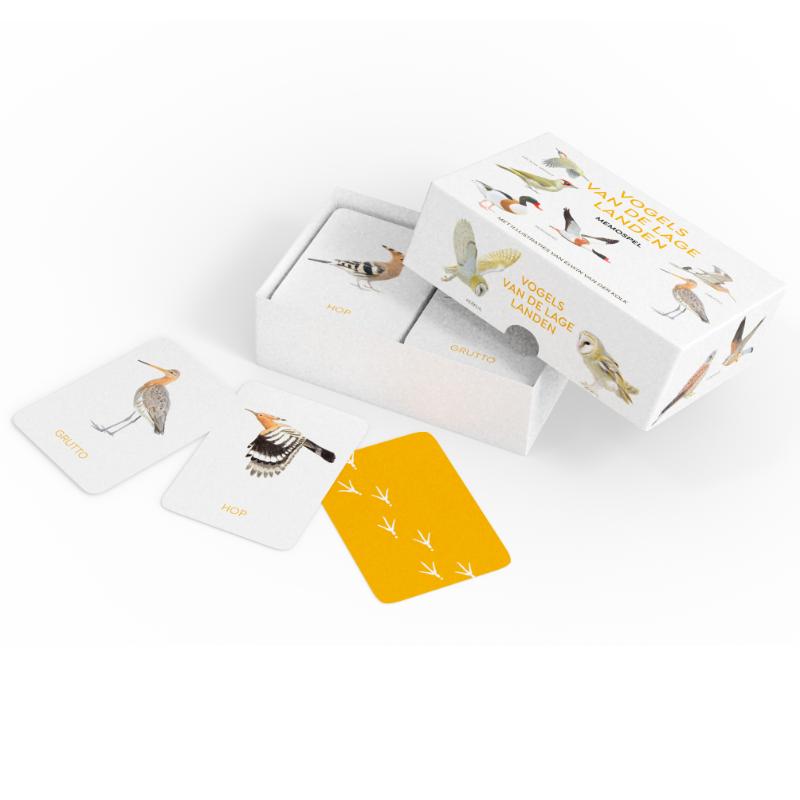 Zoek een vogelpaar bij elkaar. 'Vogels van de Lage Landen' van Elwin van der Kolk is een prachtig memospel met vogels die allemaal in Nederland en België te zien zijn. Een geheugenspel voor jong en oud met een leuke twist: leer 25 soorten vogels herkennen in zittende posities én in vlucht. Een begeleidend boekje bevat veel interessante informatie over hun kleuren, vormen, vogelzang en gedrag. Handig voor als je vogels gaat kijken in de natuur. Een leuk en leerzaam bordspel dus, voor de hele familie! Met 50 prachtige illustraties van bioloog en natuurschilder Elwin van der Kolk en in samenwerking met Vogelbescherming Nederland.