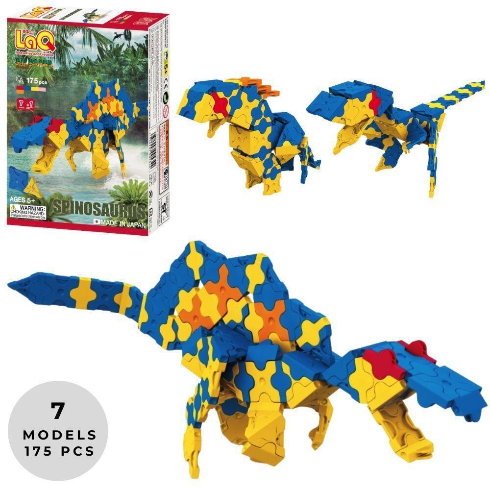 LAQ Dinosaur World SPINOSAURUS (175‑delig) laat kinderen vanaf 5 jaar én volwassenen de machtige Spinosaurus tot leven brengen met het unieke Japanse click‑systeem. Met 175 onderdelen—vierkantjes, driehoekjes en verbindingsstukjes in aardse en groene tinten—bouw je zowel gedetailleerde 2D‑patronen als een indrukwekkend 3D‑model, compleet met kenmerkende rugkam en robuuste poten.
