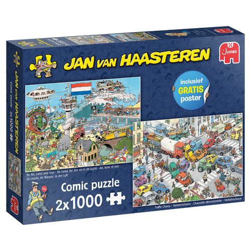 Informatie van de uitgever over JvH Ter Land, ter Zee en in de Lucht & Verkeerschaos (2x 1000):