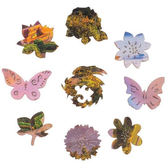 De stukjes hebben verschillende vormen en passen perfect in elkaar om geleidelijk één fascinerend landschap te vormen. Het ongelooflijke park met een klein vijvertje en een houten brug. Het tropische groen lokt je met smaragdgroene tinten in de stralen van de ondergaande zon. De eindeloze groene heuvels lijken in de lucht te vervagen.