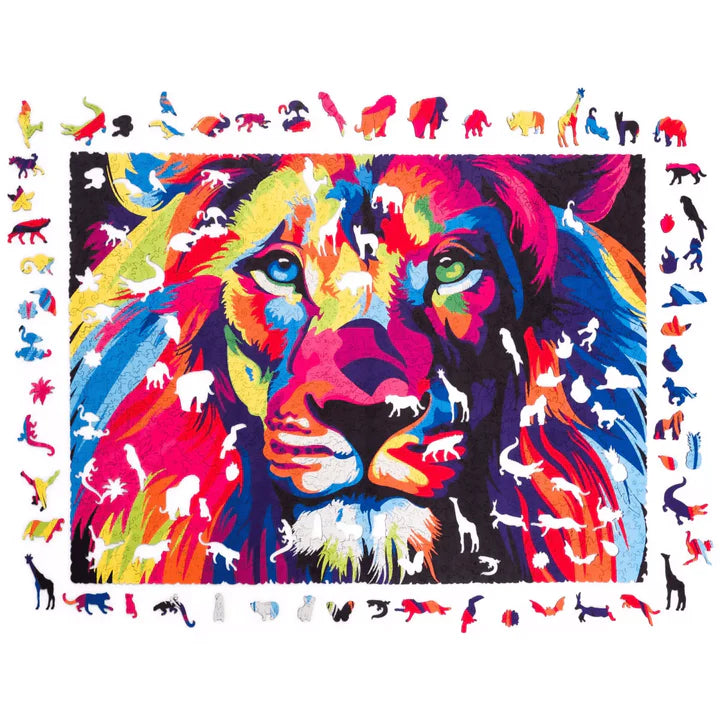 Makkelijk te kopen. Onmogelijk om te verlaten! Rechtstreeks naar het wild! Kom dichter bij de savannebewoners met de Holographic Lion puzzel. Een kalme aanblik van de koning der dieren en veel kleuren in deze houten legpuzzel geven je plezier van het proces zelf en trots op het resultaat.