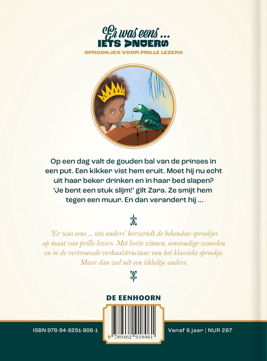 Er was eens... iets anders - De Prinses en de Kikker is een hervertelling van het klassieke sprookje, maar dan met een frisse draai voor beginnende lezers (AVI E3/M4). In dit verhaal ontmoet prinses Zara een kikker die haar een wens aanbiedt, maar Zara liegt tegen de kikker! In plaats van de traditionele prinses die direct gehoorzaamt, is prinses Zara slim en eigenzinnig, wat het sprookje een modern tintje geeft.