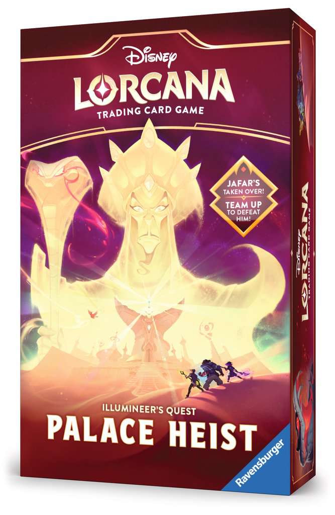 In de Disney Lorcana: Reign of Jafar – Illumineer’s Quest: Palace Heist duik je samen met Aladdin en zijn bondgenoten in een gloednieuw coöperatief avontuur. Infiltreer het paleis van Agrabah, verzamel schatten en voorkom dat Jafar de ultieme macht grijpt!