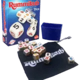 Rummikub Dice is snel, eenvoudig en biedt speelplezier voor jong en oud. Gooi de dobbelstenen om de beurt met de beker, vorm groepjes of reeksen, en wie als eerste al zijn dobbelstenen wegwerpt wint!