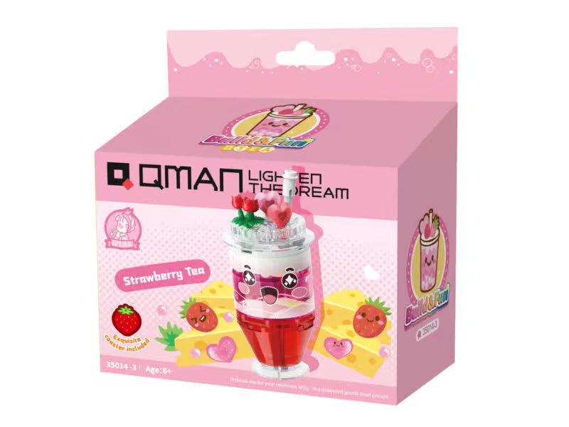 Zin in iets vrolijks en fruitigs? Met de Aardbeien Thee Bubble Tea van QMAN Build & Fun combineer je het plezier van bouwen met de onweerstaanbare charme van aardbeien! Deze schattige mini-set is een kleurrijke traktatie voor het oog én een feestje om te bouwen. Spaar ze allemaal!