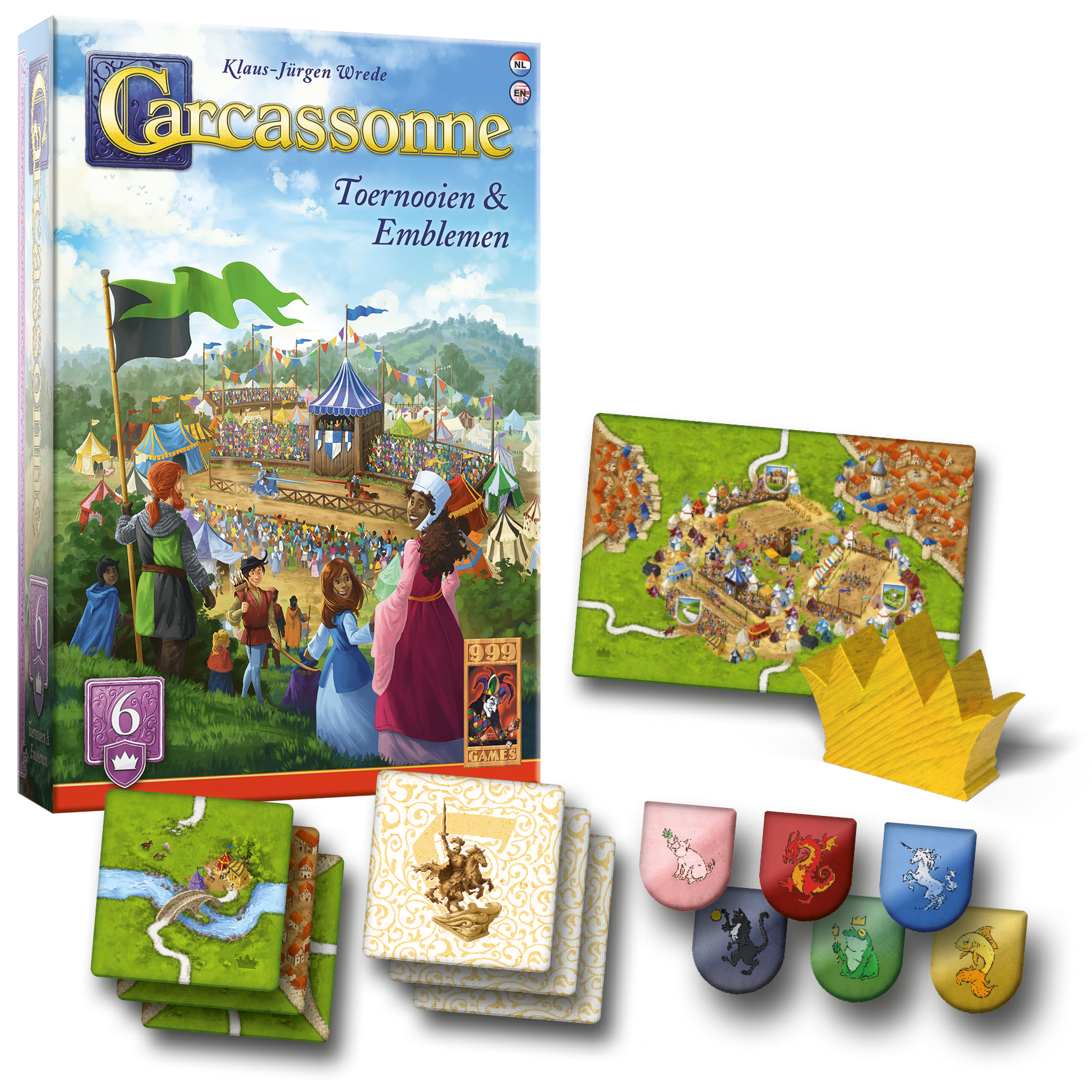 In deze uitbreiding op Carcassonne neem je deel aan het koninklijke toernooi. Nomineer ridders, reizigers en boeren in de grootste projecten en ontvang de meeste prijzen. Als je wint, wordt er ter ere van jou een waardevol standbeeld met jouw embleem opgericht.