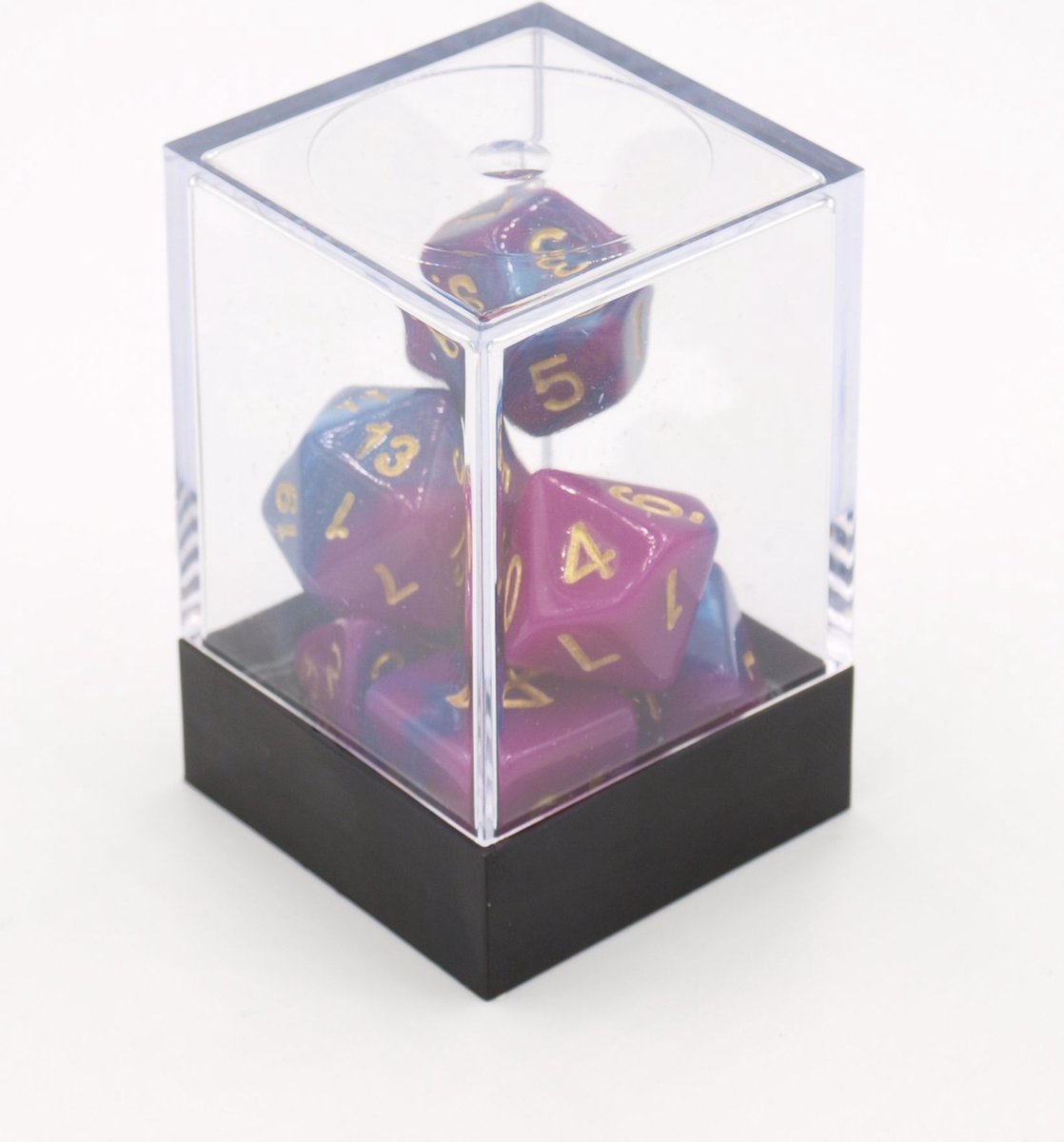 Dobbelstenen Set van 7 stuks Roze / Blauw.