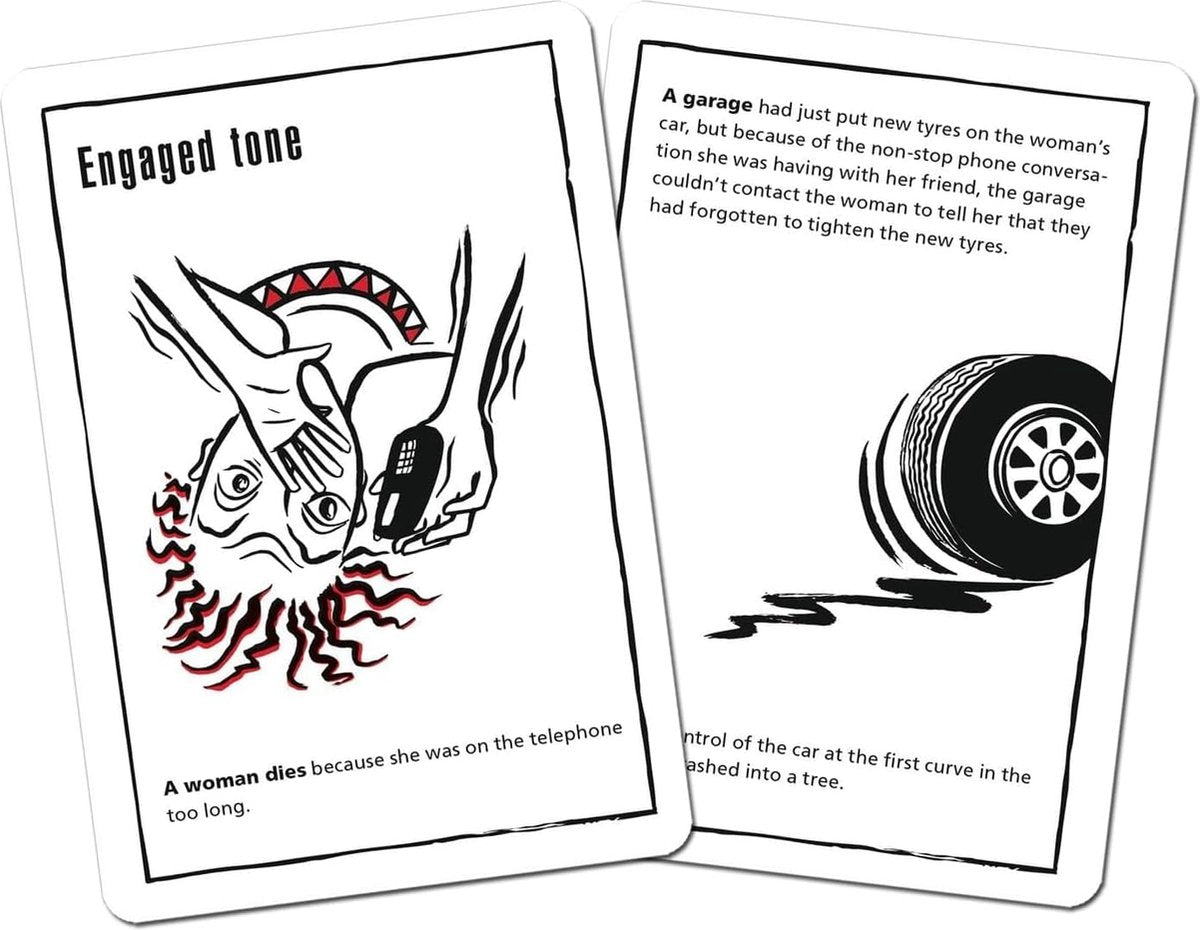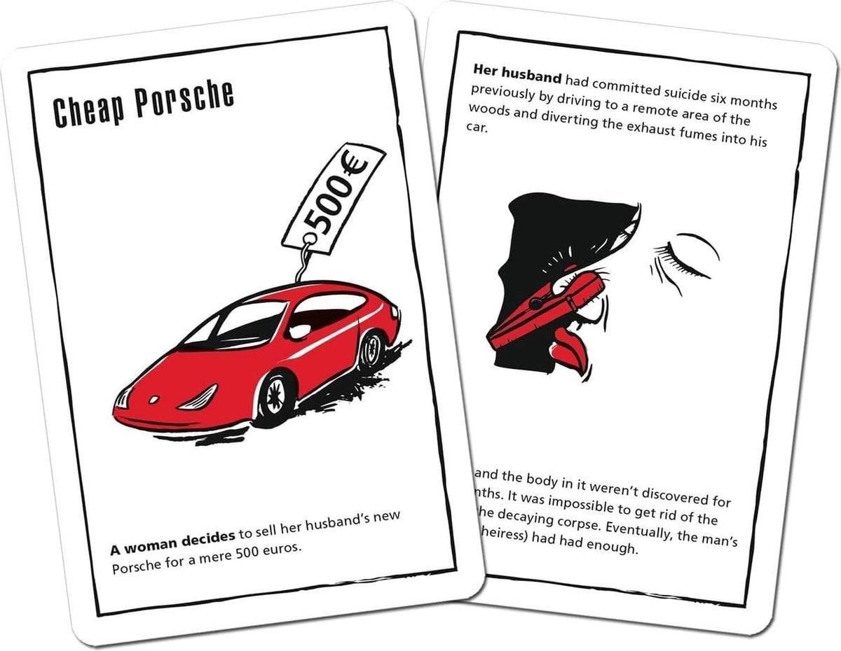 black stories zijn lastige, morbide, sinistere raadselverhalen. Los de raadsels op! Reconstrueer de bijzonderheden van elk incident, stukje bij beetje, door vragen te stellen, te raden of te puzzelen over het bewijsmateriaal - alleen of met vrienden. Het is een huiveringwekkend maar leuk raadspel dat op geen enkel feest mag ontbreken - en dat je ongetwijfeld binnenkort in de ban zal hebben.