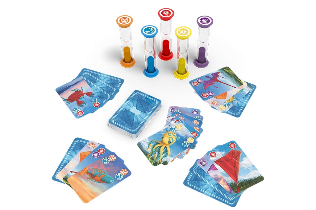 In Kites moet iedereen samenwerken om alle vliegers, uitgebeeld door zandlopers, in de lucht te houden. Spelers spelen om de beurt een kaart, draaien de bijbehorende zandlopers om en trekken dan een nieuwe kaart terwijl ze in de gaten houden of geen van de zandlopers leegloopt. Werk samen met je vrienden en speel alle kaarten om te winnen... maar wees altijd voorbereid op een onverwachte storm! De tijd vliegt…..