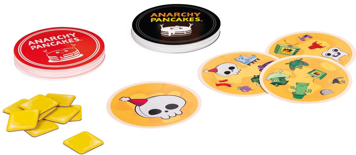 Iedereen krijgt een aantal pannenkoekkaarten met allerlei vreemde toppings erop. Match jouw toppings met die van andere spelers om hen te dwingen jouw pannenkoeken te nemen.