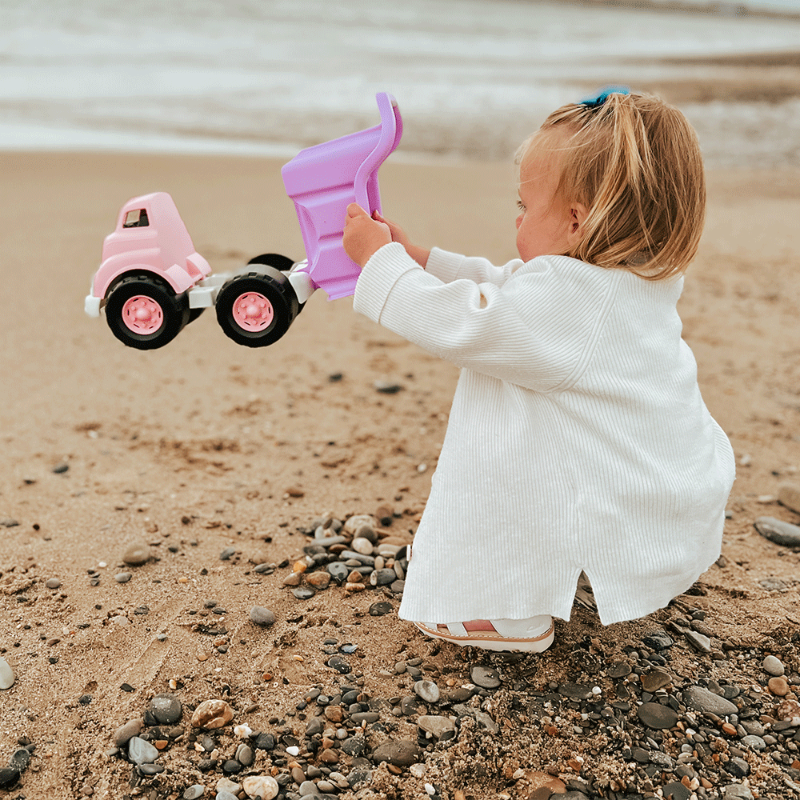 Heb je hulp nodig bij het vervoeren van een grote lading terwijl je de planeet helpt redden? De Green Toys Dump Truck staat klaar voor elke taak en kan moeiteloos zand of stenen vervoeren. Deze duurzame, milieuvriendelijke vrachtwagen is zowel veilig als stijlvol, zonder metalen assen en met een werkende kiepbak.