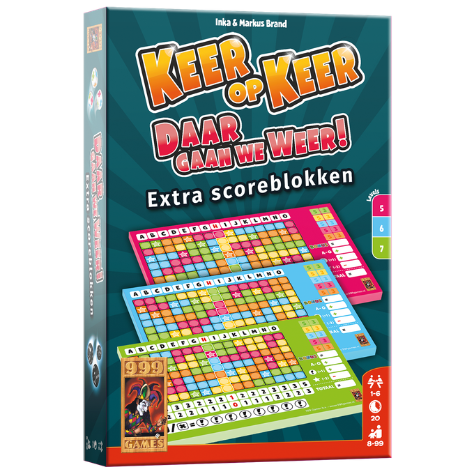 Drie scoreblokken voor de fanatieke Keer op Keer spelers met drie verschillende levels voor nog meer uitdagingen!