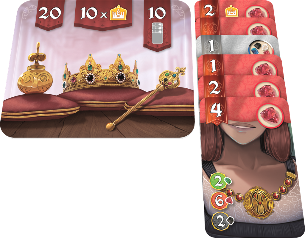 Om te winnen moet je aan één van drie eindvoorwaarden voldoen: 20 prestigepunten, 10 kronen, of 10 prestigepunten in één kleur. Daardoor ontstaan er meerdere strategieën en spannende eindes.