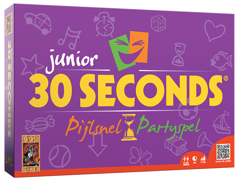 Het pijlsnelle partyspel is er nu ook voor kinderen. De spelregels zijn gelijk aan die van het bekende basisspel. Eén speler omschrijft één voor één de 5 begrippen op een kaart, zijn teamgenoten moeten deze raden. Het team heeft daar een halve minuut de tijd voor. 30 Seconds Junior bevat 480 kaarten met liefst 2400 relatief eenvoudige begrippen. Op elke kaart staan een aantal vlot te omschrijven en een paar uitdagende woorden. Zo ervaren kinderen veel succesmomenten, maar wordt het educatieve element niet vergeten. Pluspunten: