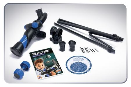 Buki telescoop met 15 experimenten. Diameter van de lens is 50mm, de lengte van de telescoop is 33 cm, tot max 90x vergroten.