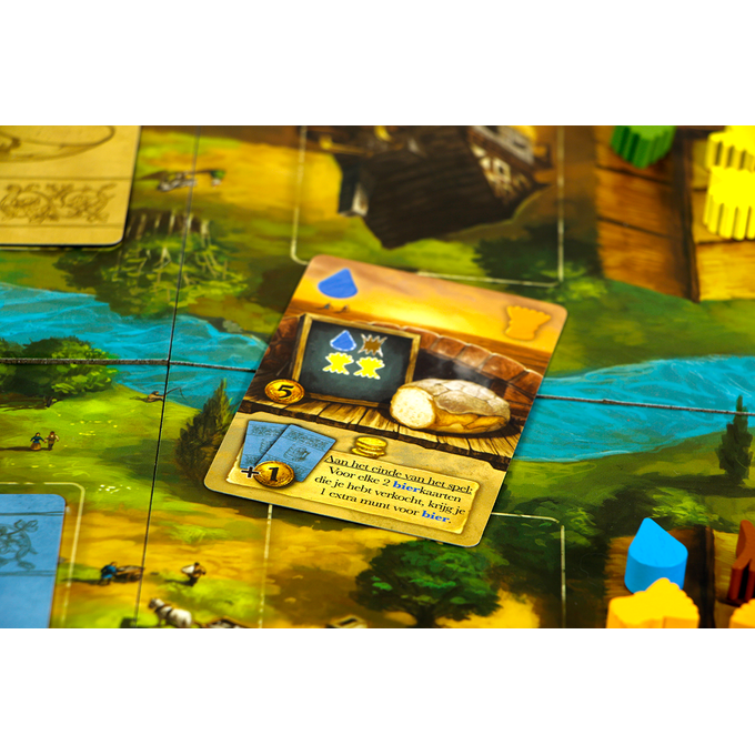 Brood & Bier is een fris en tactisch kaartspel voor precies twee spelers. In slechts zes rondes probeer je zo veel mogelijk bier te brouwen en brood te bakken. De uitdaging zit ‘m in de manier waarop je kaarten inzet: elke kaart kan op drie verschillende manieren worden gebruikt, wat zorgt voor verrassend veel strategische diepgang in een korte speelduur.