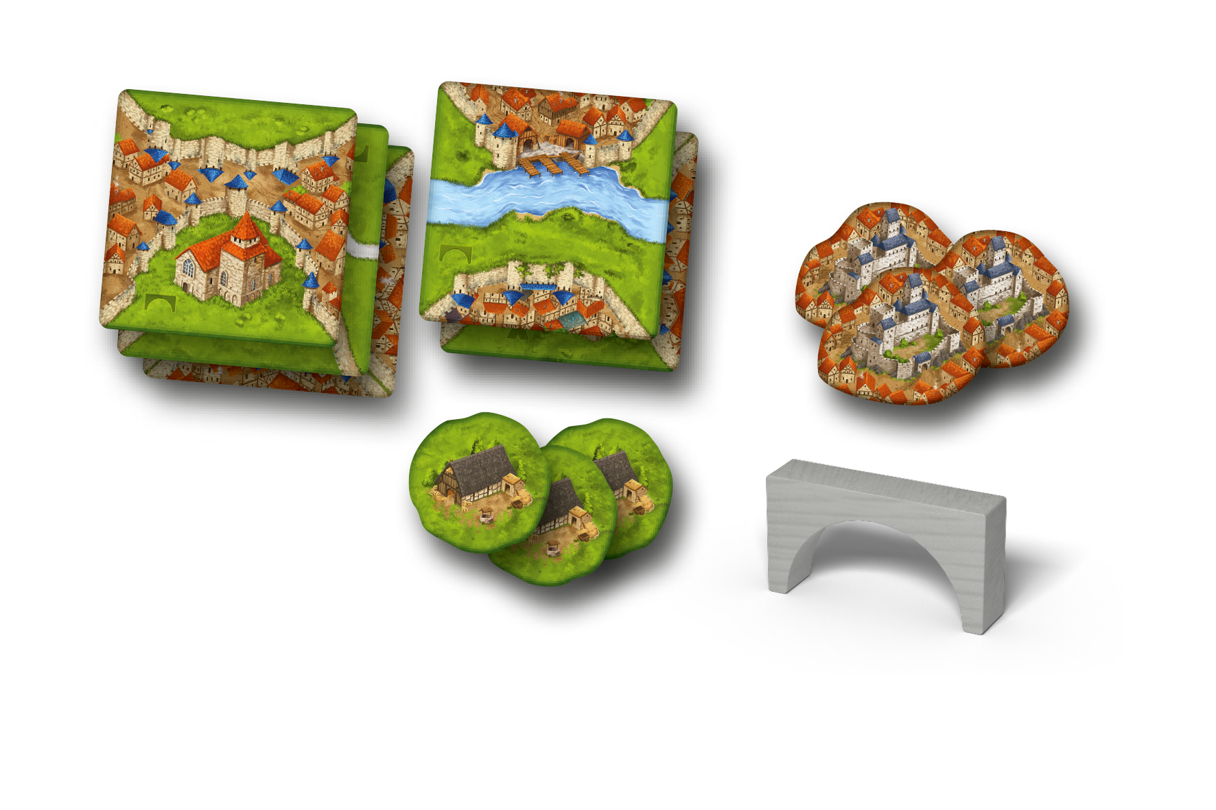 In deze uitbreiding op Carcassonne vormen nieuwe gebouwen het gebied. Slim geplaatste bruggen verbeteren je wegen, ridders worden door jonkvrouwen in burchten het hof gemaakt en boeren werken in boerderijen om punten buiten de steden om te verdienen.