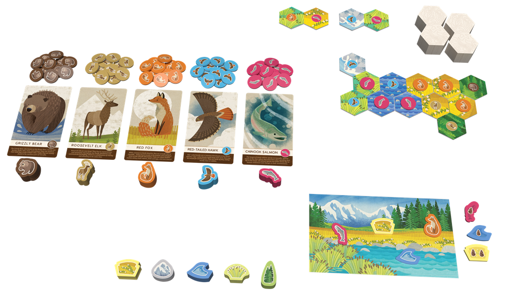 Cascadia Junior neemt jonge spelers mee op een avontuur door de wilde natuur van het noordwesten van Amerika. Deze kindvriendelijke versie van het bekroonde Cascadia laat spelers van 6 jaar en ouder hun eigen panoramakaart bouwen door dieren en leefgebieden te combineren.