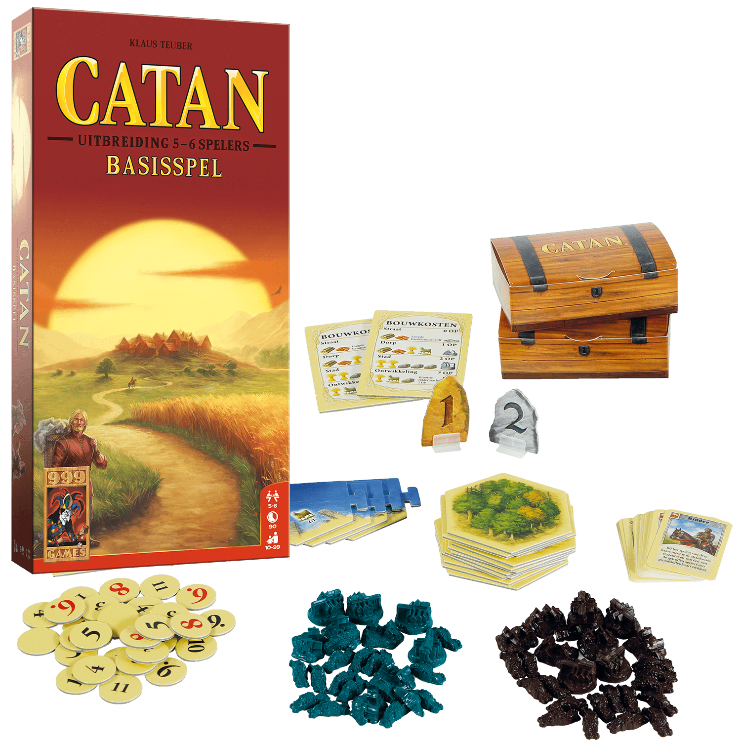 Catan met grotere groepen wil spelen bevat deze set extra stukken voor twee spelers, tegels en toegevoegde regels om het spel geschikter te maken voor meer spelers.