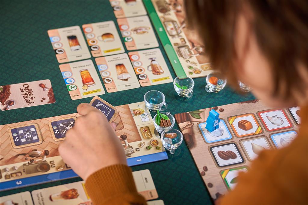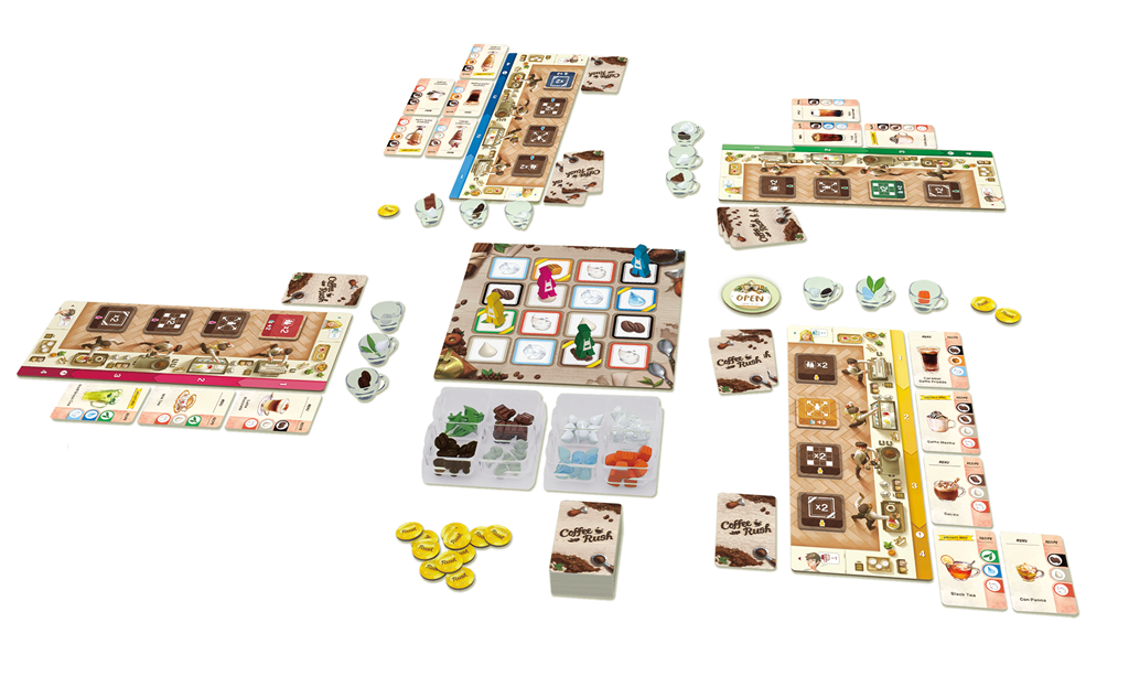 Welkom bij Coffee Rush, het gezelligste café op een drukke straat vol concurrentie én cafeïne! De sfeer is ontspannen aan de tafels, maar achter de toonbank barst de strijd los. In dit snelle en chaotische bordspel neem jij de rol aan van een ambitieuze barista die bestellingen zo snel mogelijk moet voltooien om de hoogste beoordeling te scoren.