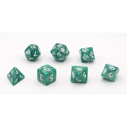 Dobbelstenen Set van 7 stuks Groen marmer / parelmoer.