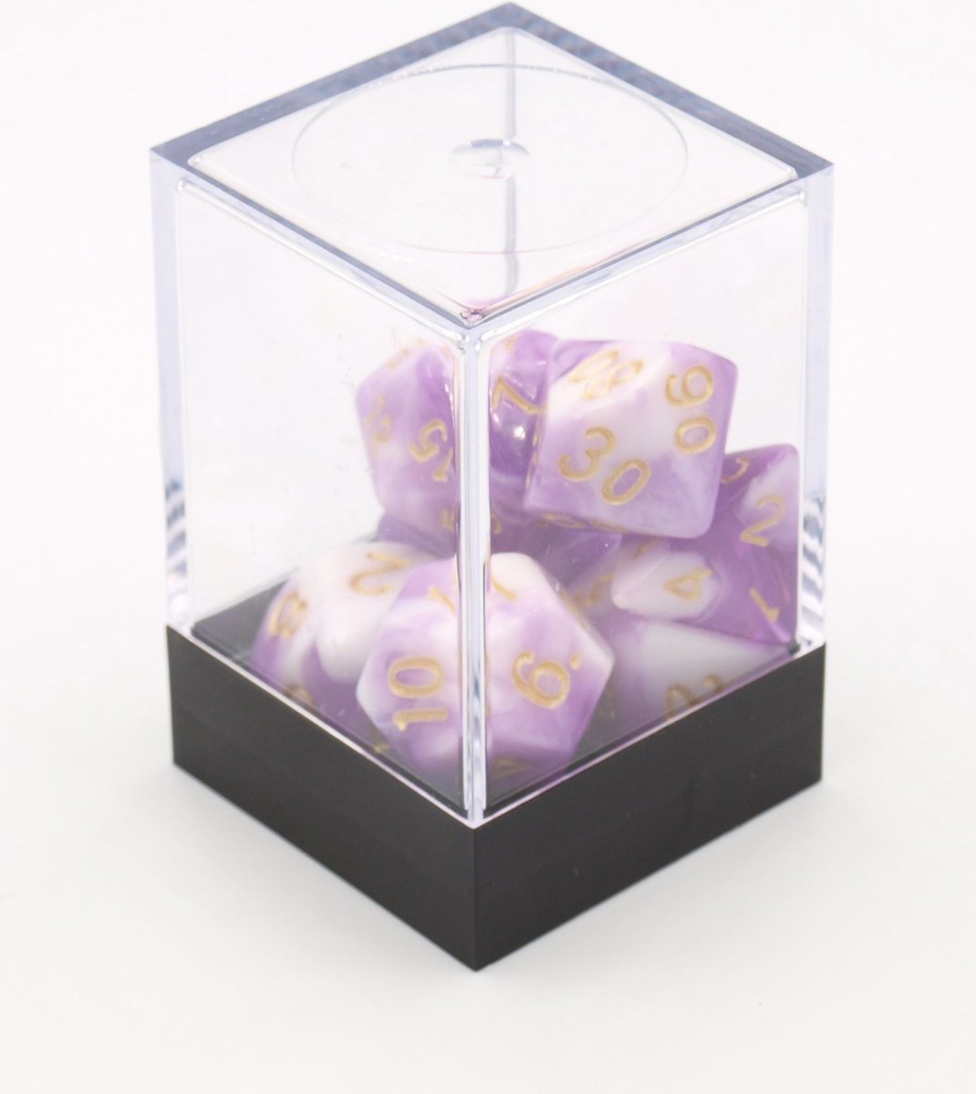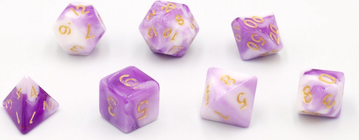Dobbelstenen Set van 7 stuks Paars / Wit.
