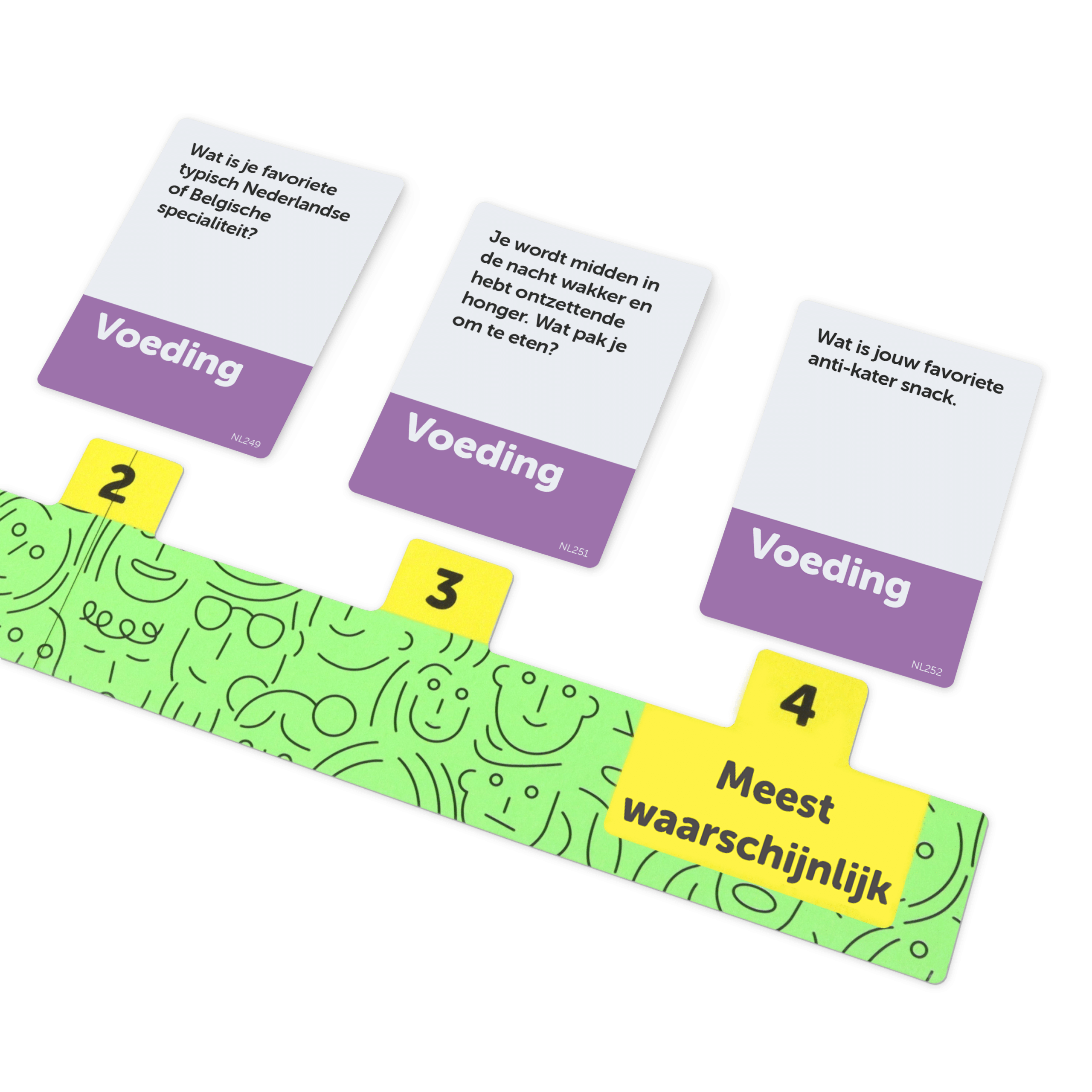 Welk eten beschrijft je persoonlijkheid het beste?? Welke topping zou nooit op pizza mogen?? Elke ronde zijn er 5 vragen in het spel uit het gekozen thema. Je vrienden beantwoorden één van de vragen, maar welke? Aan jou om de 5 vragen van minst naar meest waarschijnlijk te rangschikken op basis van de antwoorden van je tegenspelers. Hoe hoger de vraag van de ronde in je rangschikking staat, hoe meer punten je scoort! Een originele manier om je vrienden beter te leren kennen!