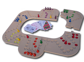Uitgevoerd in zes houten puzzelstukken waarmee met vier of zes personen kan worden gespeeld! Dit spel kan later eventueel nog worden uitgebreid naar een acht persoons versie, of met de nieuwe uitbreidingsset voor drie vijf of zeven spelers kunt u dit bordspel met oneven aantal personen spelen!