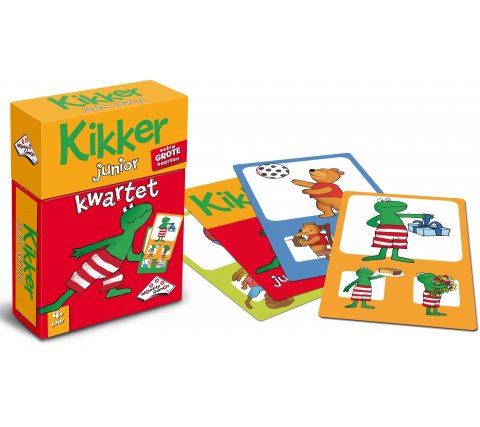 Junior Kwartet, het klassieke spel, maar perfect om ook door de allerkleinsten gespeeld te worden! Zoek telkens drie kaarten bij elkaar. Heb je een setje bij elkaar? Dan roep je “Kwartet” en scoor je punten. Met de leuke illustraties van Kikker en zijn vriendjes is dit spel perfect voor fans van de serie! Weet jij alle matches te vinden?