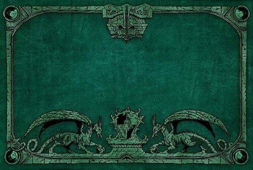Donkergroene playmat van Arcane Tinmen met decoratief drakenpatroon om de rand.