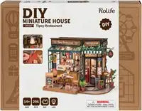 De DG167 Robotime Tipsy Restaurant is een retro houten bouwpakket van Rolife, perfect voor volwassenen en kinderen vanaf 14 jaar. Dit charmante miniatuurmodel stelt een sfeervol restaurant voor, compleet met realistische details zoals bierpullen, een biertap, wijnflessen (sommige zelfs nog in hun dozen) en een klein zitje buiten voor een snelle hap. Het leuke broodje op tafel en de reusachtige teddybeer geven het restaurant een speelse en gezellige uitstraling.