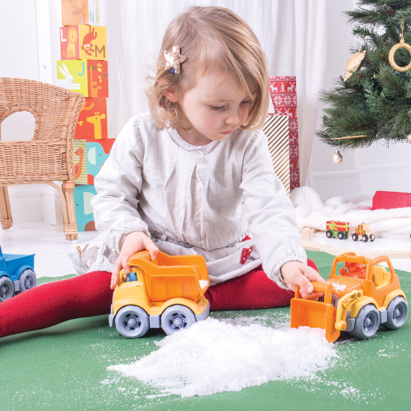 Scheppen! Mengen! Storten! Gewoon weer een dag op de bouwplaats voor de Green Toys Construction Trucks. Stevig, robuust en duurzaam, het wagenpark bestaat uit een graafmachine met een beweegbare schep, een cementmolen met een draaiende trommel en een kiepwagen met een klassieke open laadbak. Perfect in een zandbak, speelgoedkist of cadeaudoos, deze pint-sized trucks zijn precies goed voor kleine handjes en kunnen gemakkelijk worden meegenomen voor onderweg plezier. Elk voertuig wordt geleverd met zijn eigen bouwvakker bulldog, en de figuren zijn uitwisselbaar tussen alle drie. Geweldig voor individueel spel, of om te delen en te ruilen met vrienden.