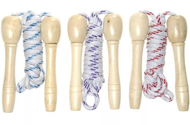 Springtouw met 14.5 cm lengte handvaten. Per stuk in zakje met kopkaart verpakt.