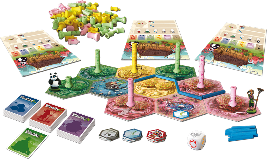 Lang geleden bood de Keizer van China een Reuzenpanda aan de Keizer van Japan aan, als een symbool van vrede. In deze Nederlandstalige versie van het bordspel Takenoko is het jouw opdracht om voor de Panda te zorgen en zijn bamboe tuin te onderhouden. Je zult land moeten cultiveren, irrigeren en bamboe laten groeien met hulp van de Keizerlijke tuinman. Maar wees voorzichtig, want het heilige dier heeft een buitengewone voorkeur voor verse, sappige bamboe scheuten...De speler die het meeste bamboe laat groeien, zijn land het beste beheert en de Panda voedt, wint het spel!